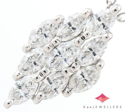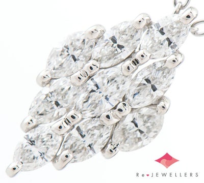特徴 「受け継ぐ人に喜ばれること」というコンセプトで質の高いジュエリーを生み出しているSUWA。計0.50ct、9石のマーキスブリリアントカットダイヤモンドをセットしたペンダント・ネックレスです。透明感のある眩い煌めきが、シンプルで洗練されたデザインに華を添えます。末永く楽しむことのできる上質なジュエリーです。
