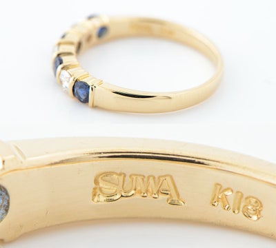特徴 「受け継ぐ人に喜ばれること」というコンセプトで質の高いジュエリーを生み出しているSUWA。ブルーサファイアとダイヤモンドをセットしたエレガントなリングです。眩い煌めきが、華やかな印象を与えます。石と石の間にある18金イエローゴールドのバーが、デザインのポイントに。コントラストの美しい洗練されたジュエリーです。