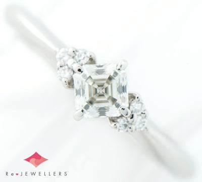特徴 オランダ・アムステルダムでアイザック・ジョセフ・アッシャーが創設し、世界でただひとつ許された「ロイヤル」の称号を持つROYAL ASSCHER(ロイヤル・アッシャー)のリング。独自のカットを改良した74面のロイヤルアッシャーカットが生み出す透明感のある煌めきに、目を奪われます。サイドのメレダイヤモンドは、メインを引き立てる可憐で繊細なデザイン。末永く楽しむことのできる、洗練されたジュエリーです。