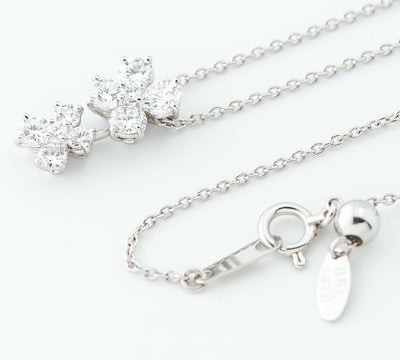 特徴 オランダ・アムステルダムでアイザック・ジョセフ・アッシャーが創設し、世界でただひとつ許された「ロイヤル」の称号を持つROYAL ASSCHER(ロイヤル・アッシャー)のペンダント・ネックレス。計0.88ctのダイヤモンドを贅沢にセットした大小二つの花がゆらゆらと揺れ、燦然と輝きを放ちます。可憐なモチーフを繋ぐプラチナのラインは、カーブを描いたやわらかな曲線。愛らしい雰囲気が漂う、フェミニンなジュエリーです。