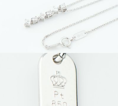 ペンダントサイズ:縦約24.6mm 横約4.8mm ネックレス長さ:全長約40.0cm チェーン取り外し:不可 ※一部にプラチナ850が使用されています。