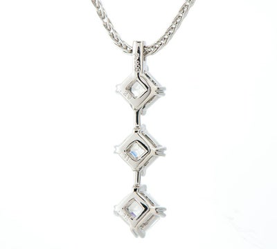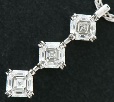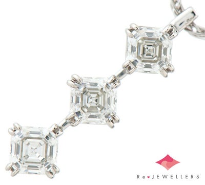 特徴 オランダ・アムステルダムでアイザック・ジョセフ・アッシャーが創設し、世界でただひとつ許された「ロイヤル」の称号を持つROYAL ASSCHER(ロイヤル・アッシャー)。独自のカットを改良し、74面のロイヤルアッシャーカットが生み出す透明感のある特別な煌めきを存分に楽しむことのできる、贅沢なペンダント・ネックレスです。上から0.29、0.31、0.32ctと徐々にサイズアップするようセッティングされているロイヤルアッシャーカットシリーズ。ダイヤモンドと一口に言っても、それぞれのグレードやカットにより輝きに個性があり、オーソドックスなラウンドブリリアントカットとは違った魅力に引き込まれます。シーンを選ばず楽しむことのできる、シンプルで洗練されたジュエリーです。