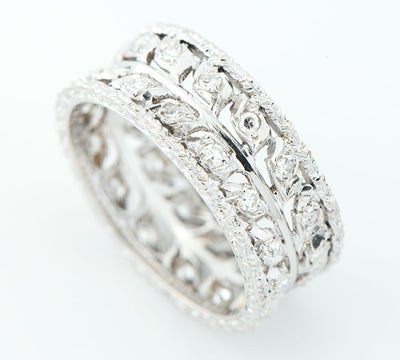 特徴 1919年より続くイタリアが誇る金細工師ブチェラッティ家の創業者として知られる初代「金細工の魔術師」マリオ・ブチェラッティ。卓越した技術を駆使して製作されたリングは、ヨーロッパのアンティークジュエリーのような気品と重厚感を感じさせます。一周にわたって途切れることなく連なるリーフモチーフが見事。シングルカット ダイヤモンドの上品な煌めきと、上品な金細工の艶がお互いを引き立てる気品溢れるジュエリーです。