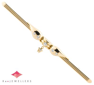 特徴 ヨーロッパ王室のためのジュエリーを作る工房として開設し、以来120余年の歴史を守り続けているドイツのハイブランド ウェレンドルフ。直線を活かした格調高いデザインが目を引くブローチです。ブランドのロゴに一石のダイヤモンドがあしらわれたチャームが、ゆらゆらと揺れます。ミキモトがウェレンドルフを扱っていた頃の商品のためウェレンドルフとミキモト、どちらの刻印も入っている貴重なジュエリーです。
