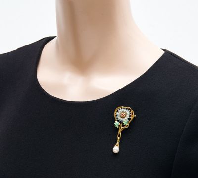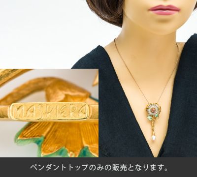 特徴 「バルセロナの至宝」と謳われるスペインのジュエリーブランド MASRIERA(マリエラ)のブローチ兼ペンダントトップです。マリエラ社のジュエリーは、マリエラ七宝という半透明の七宝技術を用い、ほぼすべてハンドメイドで製作されています。プリカジュールで表現した花びらの美しいカラーグラデーションと立体的にセットされたルビー、エナメルの艶やかなグリーンとのコントラストが、見る者を楽しませてくれる作品です。流れるようなデザインの先端には揺れるテリの良いパールがよりエレガントな印象に。芸術品として大切にしたいと思える愛らしいジュエリーです。