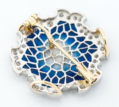 中嶋 邦夫 ニックスファクトリー エマイユ 雪輪 ダイヤモンド計0.48ct プラチナ900 ブローチ兼ペンダントトップ【中古】(2200000477668)