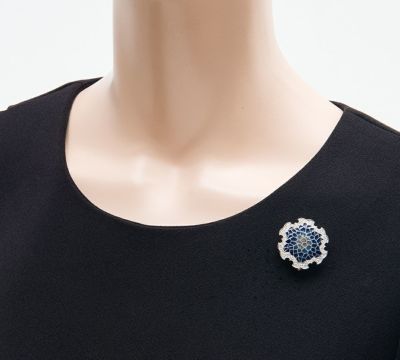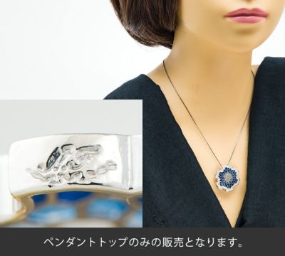 特徴 エマイユ技法を用いて独特の世界観を魅せる中嶋邦夫。数々の作品の中でも異彩を放つ、抽象的でモダンなデザインのペンダントトップです。モザイク模様は美しい濃い青色から始まり、中央に向かうにつれ向こう側がうっすら透けて見えるすりガラスのような透明感のあるエナメルが施されています。背景によって青色の濃淡が印象を変える和のモチーフ、雪輪を美しく表現した芸術的なジュエリーです。