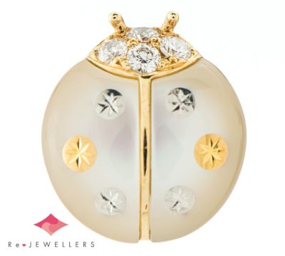 ミキモト ピクウェ てんとう虫モチーフ シェル ダイヤモンド 計0.09ct 18金イエローゴールド ブローチ【中古】(2200000481665)