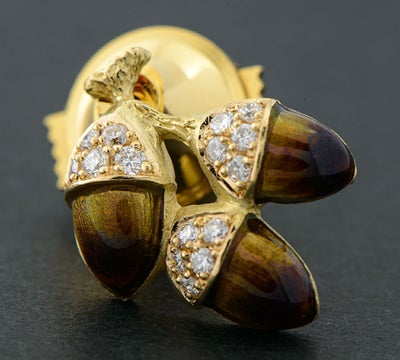 中嶋 邦夫 ニックスファクトリー エマイユ ドングリ ダイヤモンド計0.22ct 18金イエローゴールド ブローチ【中古】(2200000485991)