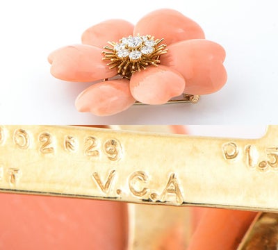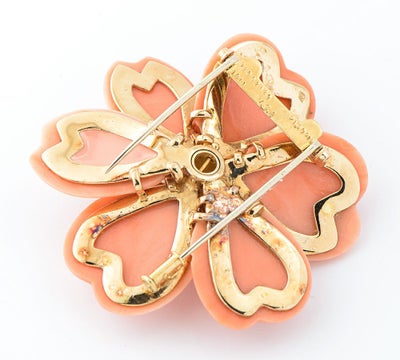 ヴァンクリーフ&アーペル(Van Cleef & Arpels) ローズドノエル ラージ 珊瑚(サンゴ) ダイヤモンド 計1.50ct 18金イエローゴールド ブローチ【中古】(2200000486042)