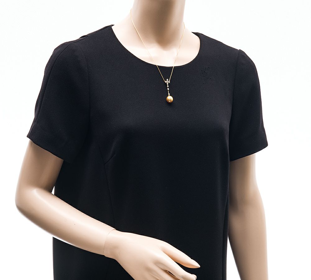 上品なゴールデンパールをセットしたTASAKIのペンダント・ネックレス。形は真円ではなく、オーバルシェイプのものがセレクトされており、柔らかなフォルムがエレガントな雰囲気。クロスの形から直線にセットされたダイヤモンドが、眩い煌めきを放ちます。テリの良い上質なゴールデンパールが艶めく、気品溢れるジュエリーです。