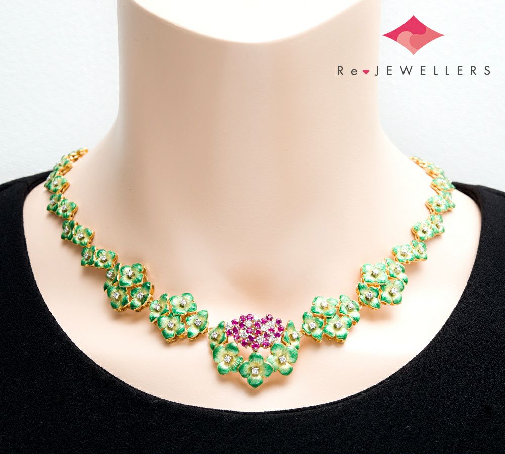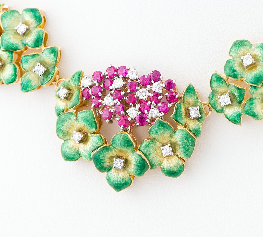 他の画像を見る 中嶋 邦夫 ニックスファクトリー フラワーモチーフ エマイユ ルビー計1.06ct ダイヤモンド 計1.87ct 18金イエローゴールド ネックレス【中古】(2200000302601) 価格 ¥ 2,000,000 税込 カートに入れる お気に入りに登録する