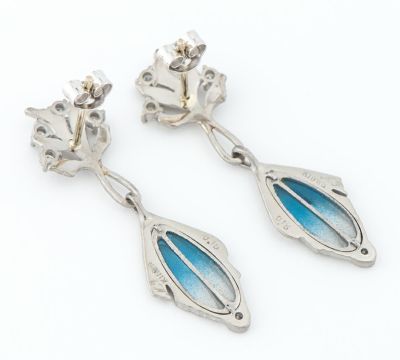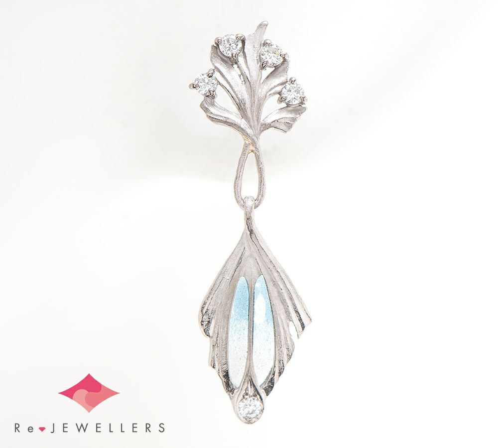 特徴 エマイユ技法を用いて独特の世界観を魅せる中嶋邦夫のニックスファクトリー。絵画を想わせる繊細な色遣いは、青から無色のグラデーションが涼やかな印象を与え、ゆらゆらと揺れる様が目をひきます。自然をモチーフにした艶消しのホワイトゴールドが放つ上品な輝きは、柔らかなデザインにマッチ。ジュエラーのこだわりを感じる、エレガントで芸術的なジュエリーです。