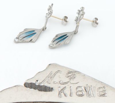 中嶋 邦夫 ニックスファクトリー エマイユ リーフモチーフ ダイヤモンド計0.15/0.15ct 18金ホワイトゴールド ピアス【中古】(2200000404497)