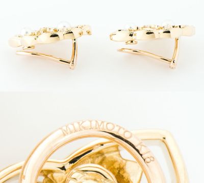ミキモト フラワーモチーフ エナメル アコヤ真珠 ダイヤモンド 18金イエローゴールド イヤリング【中古】(2200000440105)