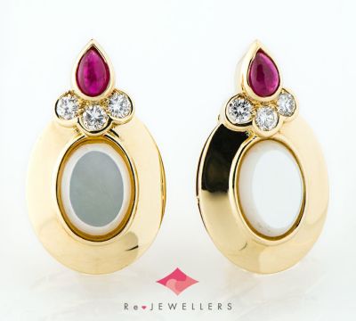特徴 大胆なデザインが存在感を放つ、ディオールのイヤリング。シェルと18金イエローゴールドの大きな楕円、ペアシェイプのカボションカットルビーを合わせた高貴なデザインに、気品が漂います。大きめのメレダイヤモンドが、華やかさをプラス。透明感のある深紅のルビーの美しさが引き立つ、独創的なジュエリーです。