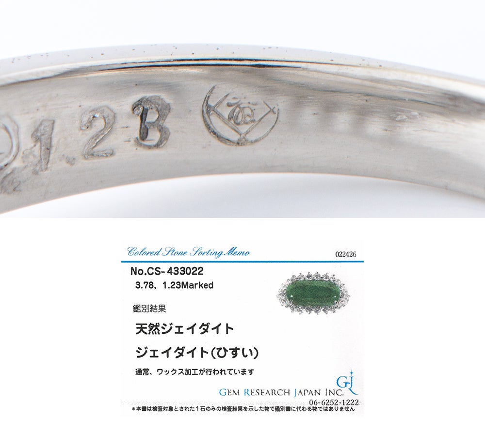 他の画像を見る 芝翫香 ジェイダイト(翡翠)3.78ct ダイヤモンド 計1.23ct プラチナ900 14号 リング・指輪【中古】(2200000486172) 価格 ¥ 400,000 税込 カートに入れる お気に入りに登録する