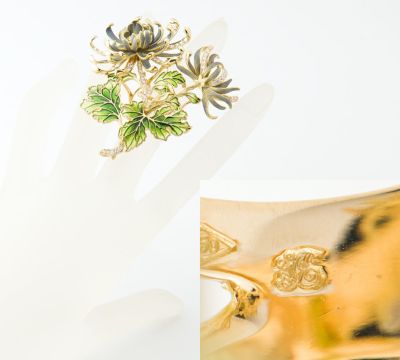 中嶋 邦夫 ニックスファクトリー エマイユ 菊モチーフ ダイヤモンド計1.06ct 18金イエローゴールド 16号 リング・指輪【中古】(2200000416957)