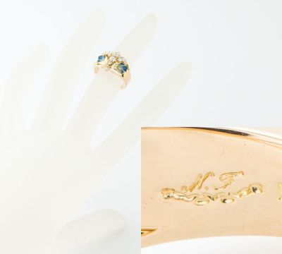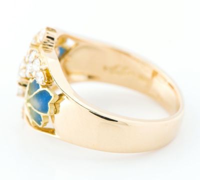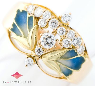 中嶋 邦夫 ニックスファクトリー トルコキキョウ エマイユ ダイヤモンド計0.42ct 18金イエローゴールド 13号 リング・指輪【中古】(2200000424747)